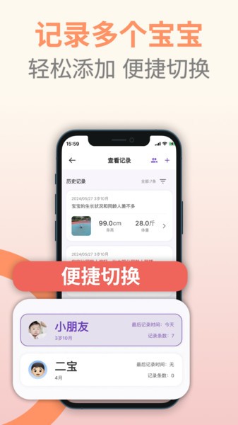 -可自定义设置宝宝的年龄、身高和体重,以了解他们的成长历程。