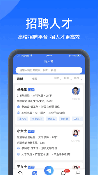 高校人才网是专为高校人才打造的求职应用,旨在为全国各院校、事业单位提供专业高效的人才招聘服务,平台内汇集了海量优秀企业和个人资源,致力于为企业提供高质量的招聘服务。