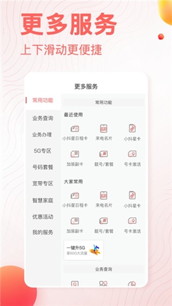 包括自助查询余额、套餐流量以及积分兑换等内容;。