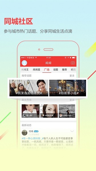 展示本地热点新闻,热门话题讨论,爆料八卦,参与线上线下互动。