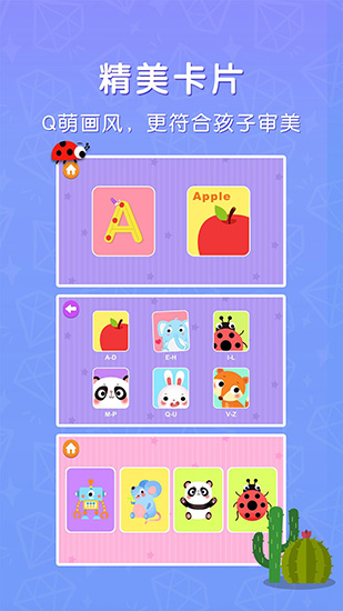 通过丰富的游戏模式,让宝宝在游戏中学会字母、数字、颜色、数字组合等概念,并培养良好的习惯和习惯,从而达到快速学习的目的。