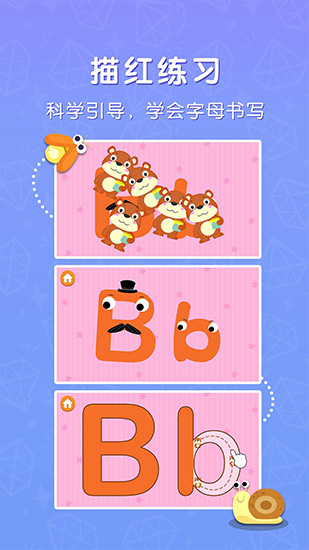 《学字母表》是专为3-6岁宝宝量身打造的一个趣味互动式幼儿英语启蒙产品。通过原创故事和儿歌,让孩子们在游戏中爱上认字母。