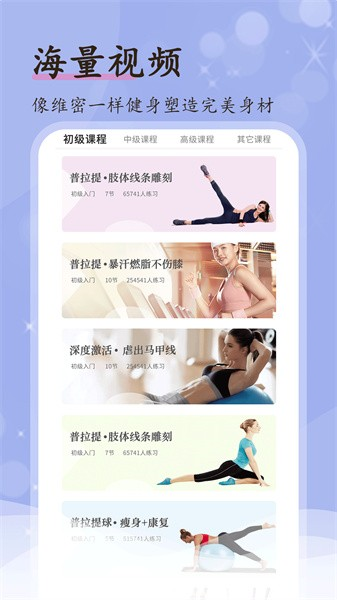 普拉提随身学软件是专门为喜欢运动的朋友准备的非常棒的app软件,现在大家就可以轻松的在手机上面找到自己想要锻炼的健身方法了,帮助用户们快速的减肥和塑形,还有丰富的健身课程等你来学习哦,感兴趣的用户快来下载试一下吧!
