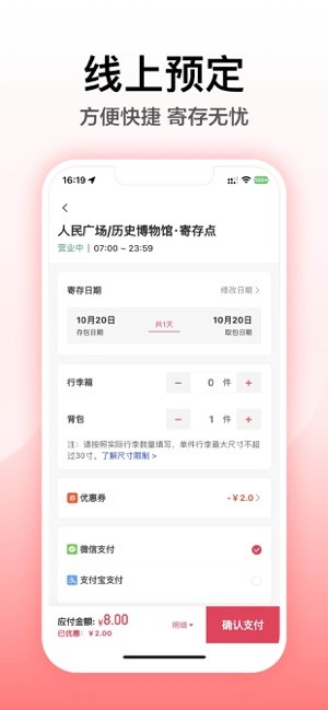1、一键呼叫:直接联系寄存人员,无需再去机场或排队等候;