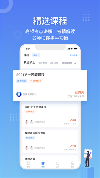 汇聚了丰富的课程内容,海量题库在线练习,历年的真题试卷一网打尽,名师在线直播指导教学,让用户可以随时随地进行刷题复习。