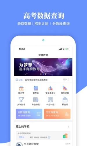 相信很多高考生在云南考志愿是专为高考填报志愿的时候,可能有些学生的分数不太好,因为他们的成绩会有所改变。所以为了能够更好地帮助大家选择自己喜欢的大学以及专业!这里为大家带来的就是育腾高考志愿app,这是一款专门针对考生打造的志愿服务平台,用户可以通过软件来查询自己的分数信息、报考学校等等内容,