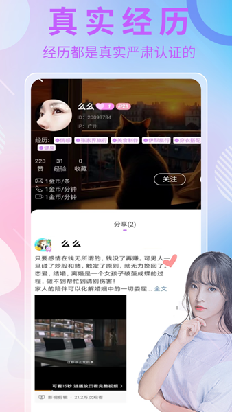 “从吗”是北京广电猫咪与新媒体有限公司联合推出了一款“在吗”,旨意在于为单身男女打造一个安全、高效、有趣、有爱的交朋友平台。在么app通过大数据算法分析用户之间的兴趣爱好和相册图片信息,从而快速找到最合适的人选。同时,在呢app还提供了丰富的功能和服务供您选择,如动态发布、语音速配、视频通话等,让用户能够更加便捷地结识新的朋友。