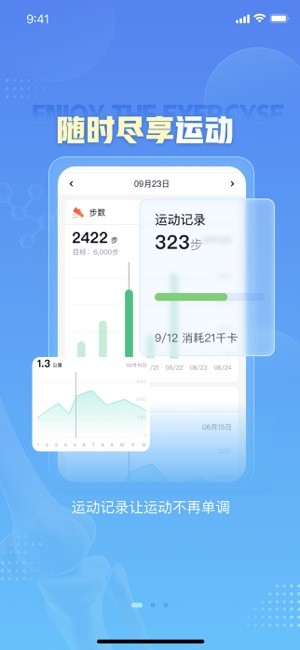 记录您每天的运动步数,统计您每一次运动的卡路里,让您了解自己的运动情况。