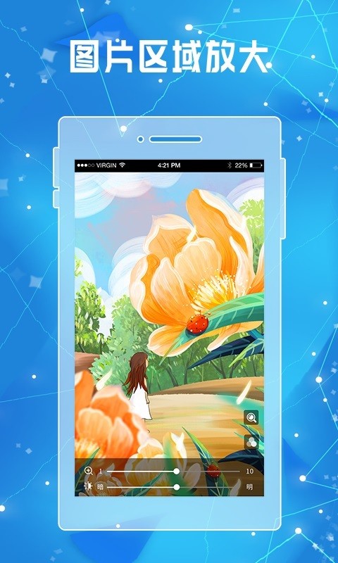 放大镜放大器会及时给出建议和提示,有助于更好地理解所需要的知识点。放大镜放大器app是专门为用户们打造的一款非常实用的手机放大镜工具,这款应用能够帮助你进行文字、图片等各种内容的放大操作使用。你可以在放大器放大器app上查看图片信息,还可以调节亮度,支持设置背景颜色,欢迎下载!