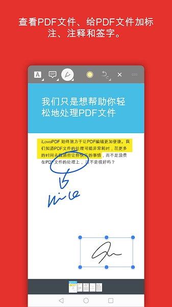 iLovepdf文件编辑处理软件是一款功能强大的手机PDF文档管理工具,可以为用户提供便捷的办公方式和高效协作体验。通过i恋人PDFapp你可以轻松地将自己的PDF进行合并、拆分或压缩等操作,同时还支持多种格式之间的转换与分享!