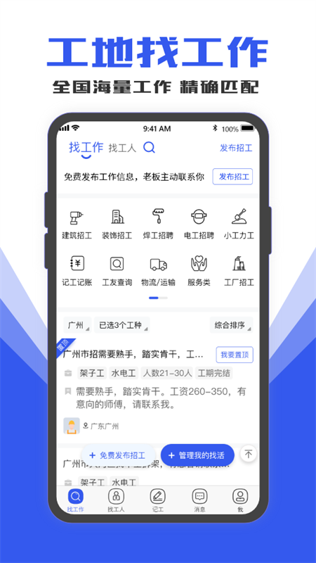 是一款专注于建筑工人求职招聘服务的手机软件,用户可以根据自身条件快速筛选并匹配到适合自己的工作岗位;同时,工地找工作app还提供详细的薪资说明和职位要求,帮助用户更准确、便捷地完成工作任务。