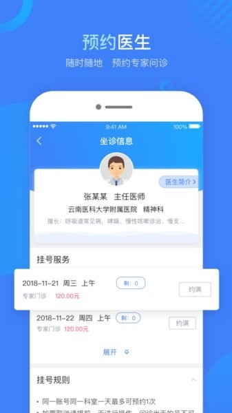 预约挂号,可选择本地医院或门诊科室并提前预约挂号,节约排队时间。