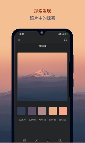 色采调色是一款色采配色的应用,它提供了海量的色系供您参考,包括风景摄影、人物造型、美食菜谱等等,帮助您迅速提升配乐水平。无论你是想要在工作还是学习中都能得到满足。