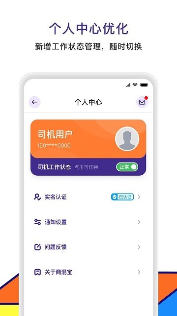 4、评价系统:具备评价体系,促进司机不断提升自己的能力,优化运营策略。商混宝司机用户可以使用这个司机app进行注册成为一名司机,这里有非常多的优质订单等你来接取哦!在这款应用中你可以选择自己感兴趣的订单类型,并与其进行联系。同时还支持添加自己的银行卡信息以便于提现使用,如果你也想了解更多功能请下载使用!