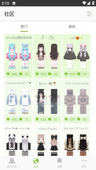 1、下载安装我的世界皮肤编辑器app,然后打开软件后在主页可以看到有很多的模板等你解锁体验。