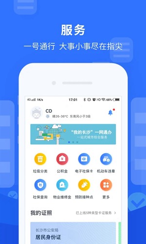 我的长沙是市***所开发的政务服务app,软件可以提供社保、医保、交通、住房等各种便民的服务内容。市民可以通过这款软件了解***发布的政策信息和办事指南等等