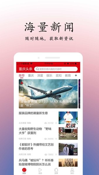 重庆头条新闻是用户展现的新闻信息和本地生活服务两大功能板块,旨在为广大用户提供全方位、个性化的新闻推送及生活相关服务,