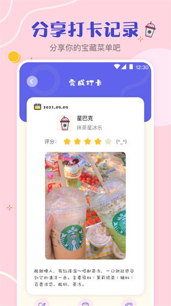 -丰富的打卡模式供大家选择,比如喝一杯咖啡,坚持每天打卡都可以获得奖励;