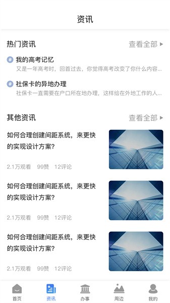 用户可以使用这款软件在线办理各种生活服务,比如医保缴费、社保查询以及水电气缴纳等等,非常方便。而且在这里还有很多政务方面的内容和政策信息都可以第一时间了解,让用户足不出户就可以知道最新的新闻资讯动态。