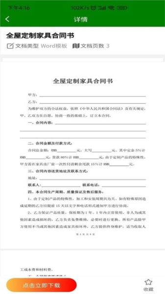 合同模板是专门为用户打造的电子合同软件。在这里你可以看到很多常用的法律文档,并且可以在线下载阅读了解各种相关知识内容哦!而且还支持进行一键收藏和分享操作哟!