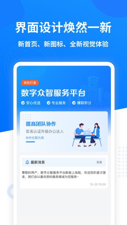 数字众智服务平台app为企业用户搭建一个沟通协作的平台,需要的用户快来下载试试吧!