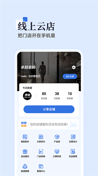 除此之外,这款助店通官方版不仅能实时更新最新的门店信息以及最新活动通知消息,而且还可以对客户进行详细的信息了解与跟进记录查看,让用户的经营情况一目了然,从而更快地提高门店的经营效率!有需要的用户快来下载使用吧!