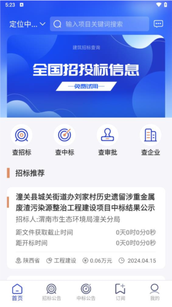 建筑招标查询可以为各位用户带来一站式服务,在这里你可以查找自己想要的信息。平台上的所有信息都是实时更新的,你还可以在分类中进行筛选寻找感兴趣的信息内容哦。同时还为大家带来了行业资讯板块,让你了解行业动态等多种功能!欢迎有需要的朋友下载使用!