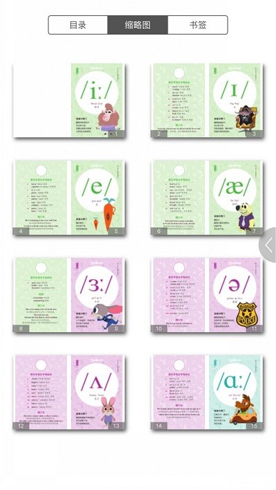 6、多种多样的音标字母卡片资源任意浏览与切换查询查找需要的内容;英语音标学习方法:英美标准语音音标学习方法是专门为孩子所设计的音标学习法,通过音标学习方法让小朋友对英语发音和音标进行全面的学习,帮助小伙伴们在手机上就能轻松的学习英语,需要的小伙伴们快来下载使用吧