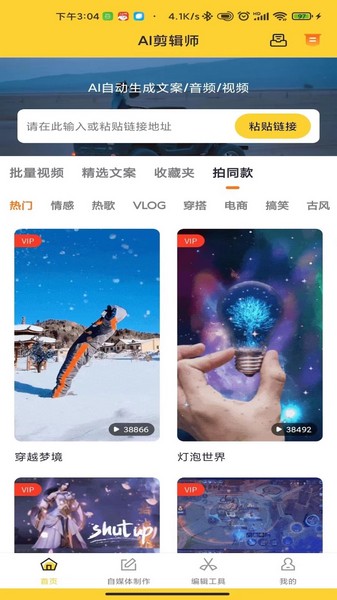 AI剪辑师智能剪辑软件是一款手机端视频制作神器,拥有多种模板供你挑选并免费应用于多个平台上,让你轻松打造出个性化的视频内容。同时,它还提供了强大的编辑和美化功能,让您的视频变得更加有趣、有艺术气息。
