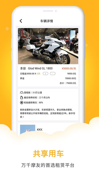 租个摩托APP是国内唯一的摩托车租赁交易平台,为广大摩托车爱好者提供一站式摩托车租赁服务,包含多种品牌摩托车,如宝马(奔驰)、兰博基尼/宾斯达克/。平台内汇集了众多摩友们,他们在这里分享自己的摩界见解,交流心得,结识志同道合的骑行朋友。