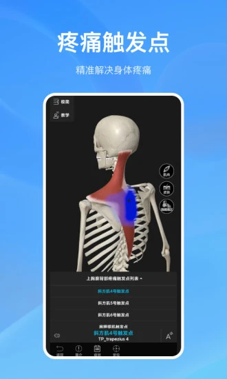 解骨骼动画(肌肉演示)、关节动画、神经系统、消化科幻和泌尿生殖系统等。这些动画以形象生动的方式展示,使用户能够更好地理解人体结构和相关知识。
