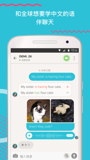 Tgrlatem中文版是专为想要学习英语的朋友打造的一款语言交流社区,在这里你可以与全世界的学员一起进行语言沟通。软件内置了海量的实用功能可以帮助你快速掌握英语基础知识和口语能力!有需要的朋友欢迎在本站免费下载体验!