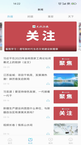 无线淮安电视新闻是淮安市广播电视台打造的一款本地化资讯阅读软件,软件中用户可以在线观看最新的视听内容进行体验,海量的实用功能等你使用,还可以一键收藏喜欢的节目和视频到个人账号上。对软件感兴趣的话不妨点击下载试试!