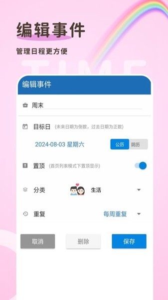 允许用户根据自己的喜好对日历、纪念日等类型添加或删除标签来创建不同类别的通知方式;