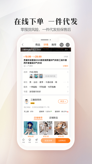 一款专门给微商卖家设计的专业在线交易平台。这里汇集了全国知名设计师、工厂、实体店等厂家和个体商家来合作发布款式及进货需求;同时支持一件代发功能,让微商更方便快捷地管理自己的货架并实现销售量增长。