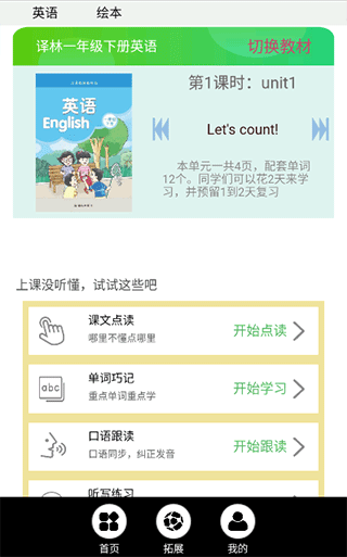 小学英语同步点读是厦门智趣互娱出版社官方推出的小学生学习英语软件,这款软件可以为小学生提供便捷的英语教材内容、丰富的学习资源以及趣味性的学习方式等等功能!