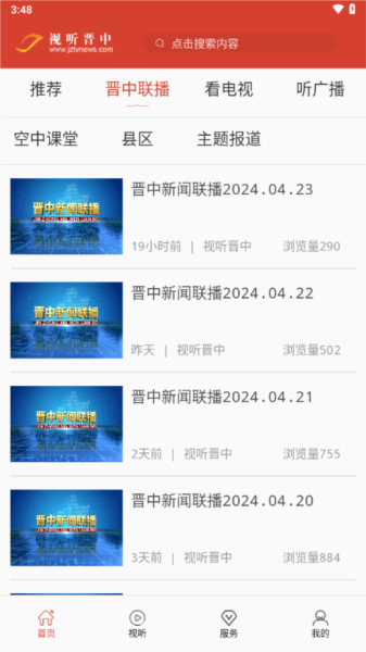 视听山西中客户端是一款以权威媒体与便民服务的移动端应用程序,由晋中日报社主办,是晋中的“融媒+服务”新媒体平台之一;立足于本地,提供海量精彩视频节目,