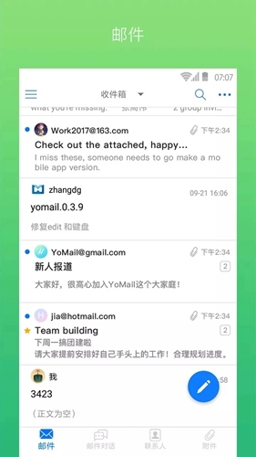 九omail邮件app是一款非常好用的邮箱软件,它主要是用来进行邮箱的收发和处理服务。这款软件不仅拥有简约的界面、便捷的功能以及强大的附件下载功能,可以让你在手机上轻松管理所有邮箱账号信息等内容!
