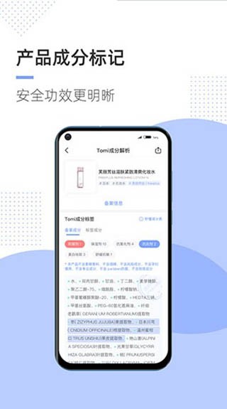 一款专注于皮肤质感、健康管理的专业工具,主要用于美妆护肤品查成分、查成分分析、查成分搜索、产品展示等功能;通过手机扫描产品条形码或条形码来获取商品相关信息以及价格及质量报告.