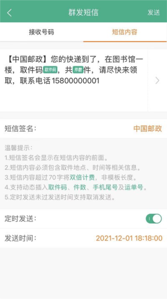 快递短信宝app是专为广大的快递员打造的一个群发服务平台,用户可以使用手机号码进行快速发送通知信息和收件人消息等等。功能强大全面!快来下载体验吧!