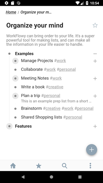WorkFlowy中文版是一个非常好用的手机笔记软件,可以帮助用户快速的记录自己的工作生活内容和各种各样的任务事项。通过这个软件你可以随时在手机上查看自己每天完成的工作清单以及一些需要完成的事情!