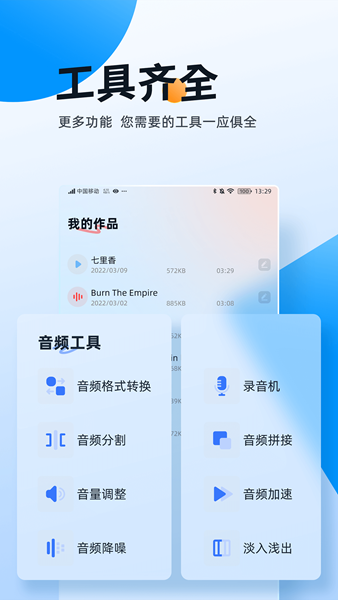 伴随着音乐,你在听着歌曲的时候突然出现各种各样的问题呢?现在你需要一款专业便捷的音频处理app,就用它来帮助你解决这个烦恼,有了这款软件就能实现你的音频制作需求了,非常全面的功能等你来体验哦!