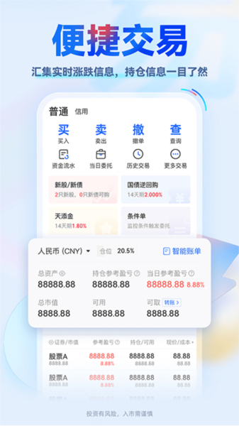 5、【丰富产品】涵盖所有股票、基金、债券、港股、期货、黄金、白银等主流证券品种,助您全方位掌握证券市场动态。