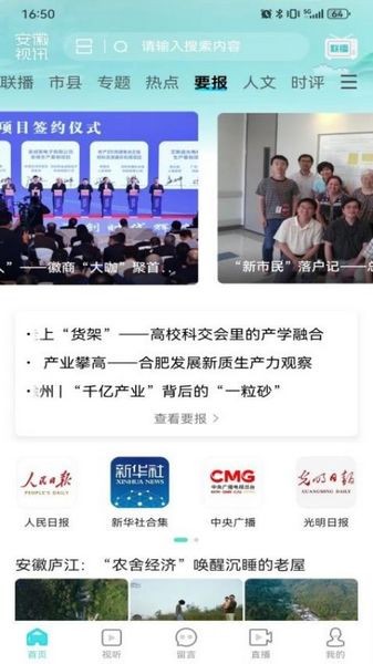 以“移动优先”为特色,在第一时间将安徽本地最新、最权威的资讯和电视节目发布到客户端上,