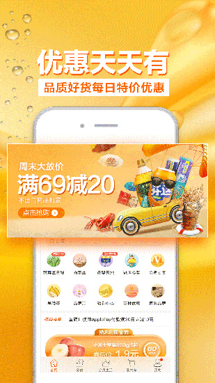 水果蔬菜等,涵盖各类日常生活用品;无论是休闲零食还是家居生活用品,都可以在这里找到满足需求的产品内容并享受到各种折扣福利。