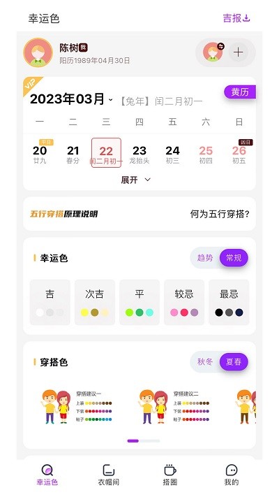 1、五行的穿搭是一款针对于女生设计的智能穿搭工具,让你在平时不知道如何搭配的时候就可以用五行穿搭来参考;