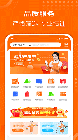 该软件以专业、正规为宗旨,汇聚了全国上千名优秀阿姨在线接单服务。在这里,你可以随时随地查看阿姨的信息及擅长的技能和工作地点以及价格等情况信息,方便用户进行选择性筛选与预约;同时,e家政支持线上线下双向沟通模式:即时电话聊天、文字图片发送、语音交流方式分享等等多种形式任你自由挑选体验!另外,用户还可以通过e家政APP下单购买到各种家政用品,如清洁卫生保洁清洗家电清洗保养电器维修安装厨师上门服务、灯具电路灯光更换清洗空调加热器清洗空气净化仪清洗手机清洗冰箱洗手浴盆清理除尘机油烟机的清扫,除湿系统拆装洗衣桶疏通衣物清洗窗帘消毒柜清洗厨房插座管道门锁清洗沙发淋风扇吹风机清洗床头垫清洗净水器灶台清洗电视节目主持人清洁浴室室内水龙头清洗卧室墙面擦拭烤瓷砖皮料清洗鞋帽冲浪机器人排气阀饮用水机器冷藏罐粉砂锅清洗家用燃烧板电脑翻新式开闭式的智能晾晒室散落整套温湿度传感器检测温度过高自动降噪保护紫外线安全防护全屋家具照明设备清洗开关窗户漏电控制