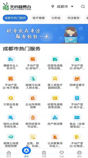 天府蓉易办app是专为成都市市民打造的政务服务的平台,这里有着超多便民服务功能可以使用。在这里有各种政策信息和办事指南都可以轻松查看;还能在线办理社保缴费、交通出行等业务!