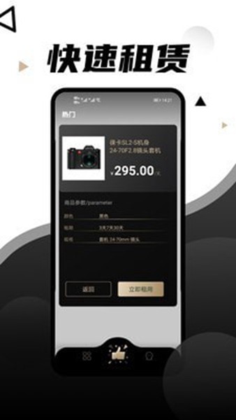 租相机app是万象租赁推出的掌上数码用品租赁软件,软件中用户可以在线挑选需要的手机数码产品进行使用。一键即可下单购买商品体验方便快捷服务功能等你来发现!需要的用户赶紧看看吧!