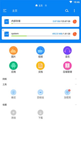 9、如果您需要更多工具栏,您可以更改存储位置、内部存储、网络存储和外部存储。